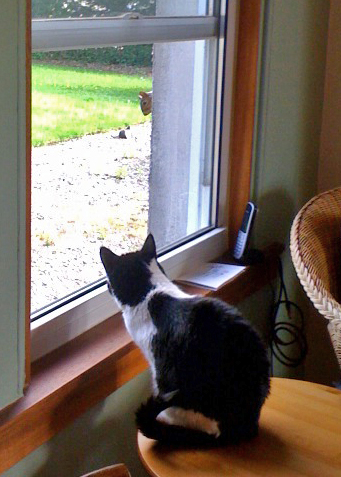 Meanwhile, as I courted the river, Molly befriended a squirrel. It’s not nearly as much fun as indoor mice, but it does add excitement to sunny quiet day.